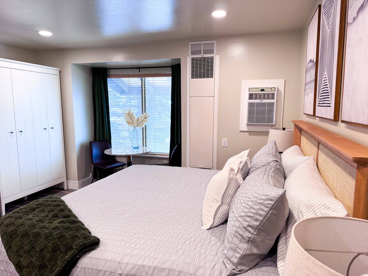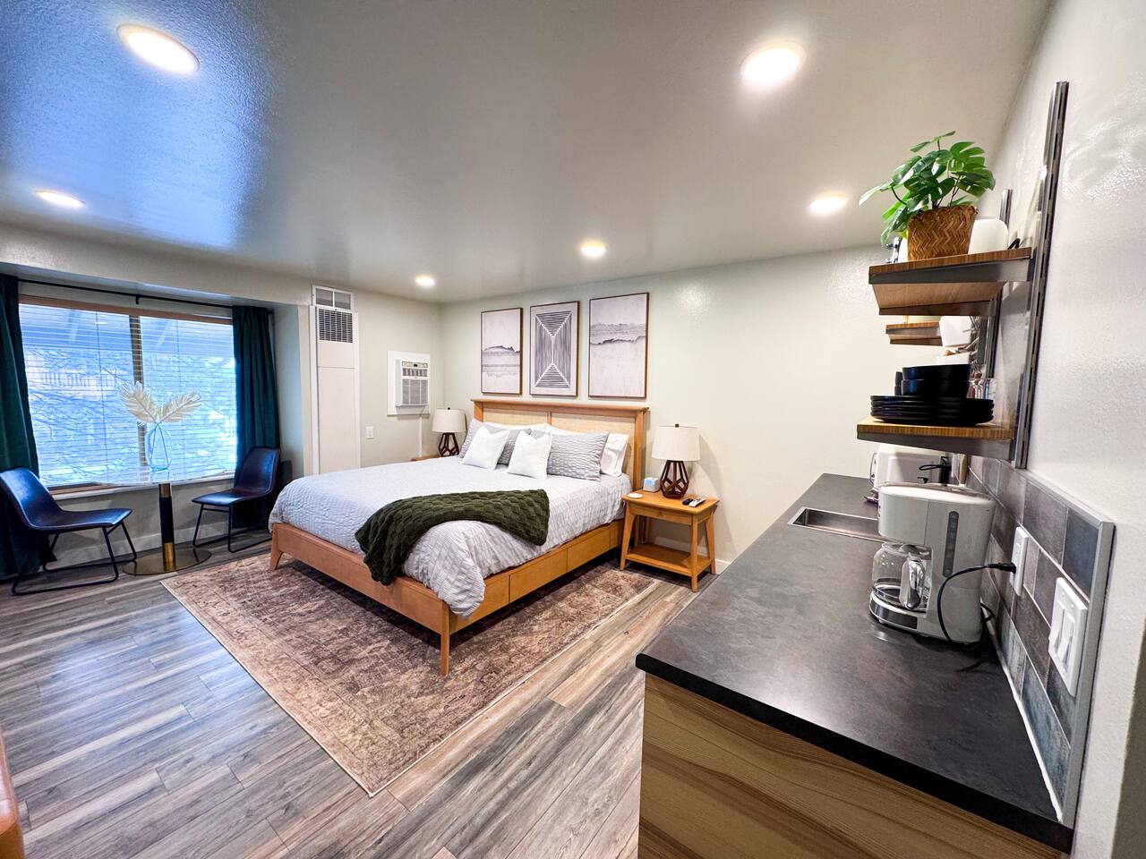 Remodeled in Fall 2024, this stylish Park City studio is your perfect base—whether you're skiing, attending Sundance, or unwinding. Enjoy a king bed, 65” Smart TV, kitchenette, and EV charger. Steps from the free shuttle and minutes from Main Street, you're close to everything. Relax in the seasonal pool and year-round hot tub (just 100 yards away). Ideal for couples, solo travelers, or remote workers seeking a mountain escape.