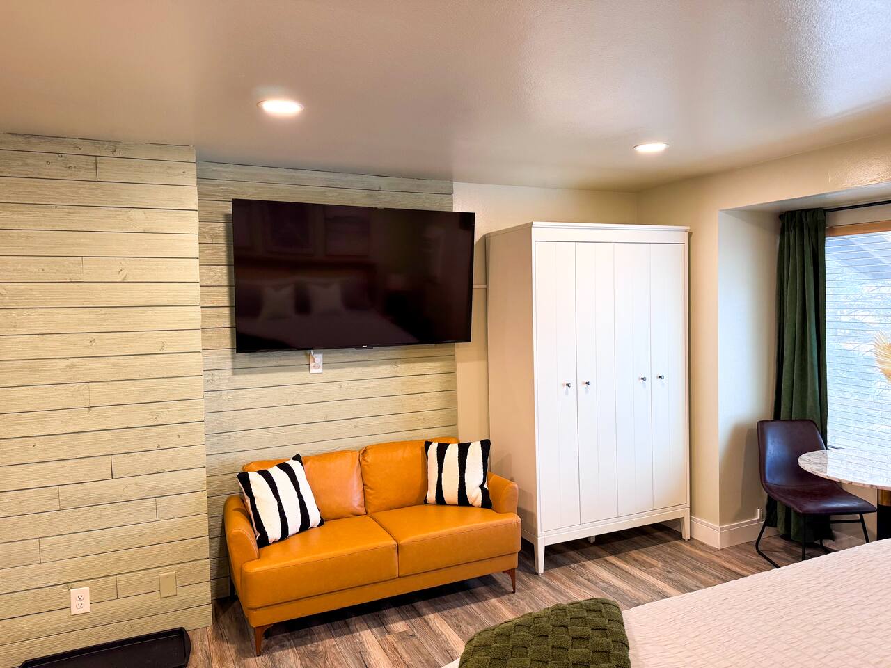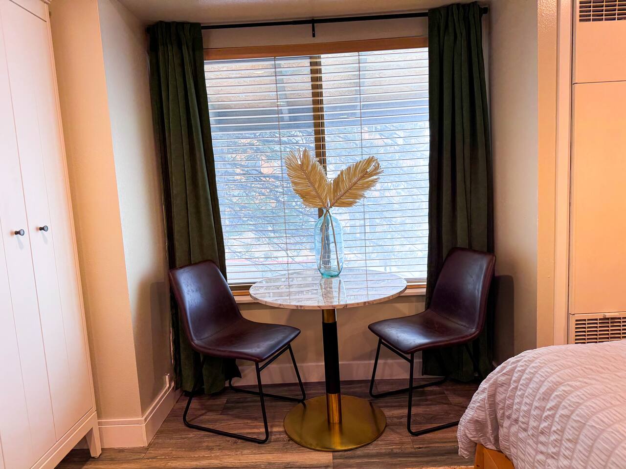 You’ll have full, private access to the studio, plus shared access to the year-round hot tub and seasonal outdoor pool—located about 100 yards from your building, near the check-in office.
